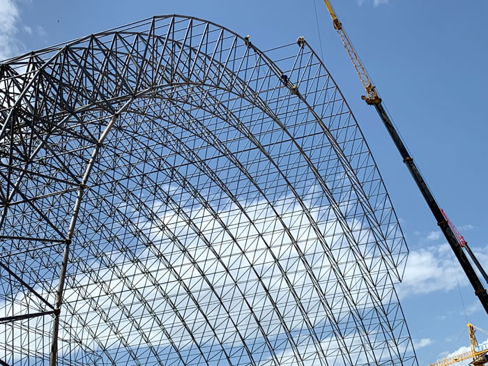 (2)网架加工前应对现场尺寸进行复测,确认无误后方可进行加工、安装;网架制作、运输、安装应遵守《空间网格结构技术规程》JGJ7-2010、《钢网架张家港螺栓球节点》JG/T 10-2009、《钢网架张家港螺栓球节点用高强度螺栓》 GB/T 16939-2016、《张家港钢结构张家港工程张家港施工规范》 GB50755-2012、《张家港钢结构张家港工程张家港施工质量验收标准》 GB50205-2020。